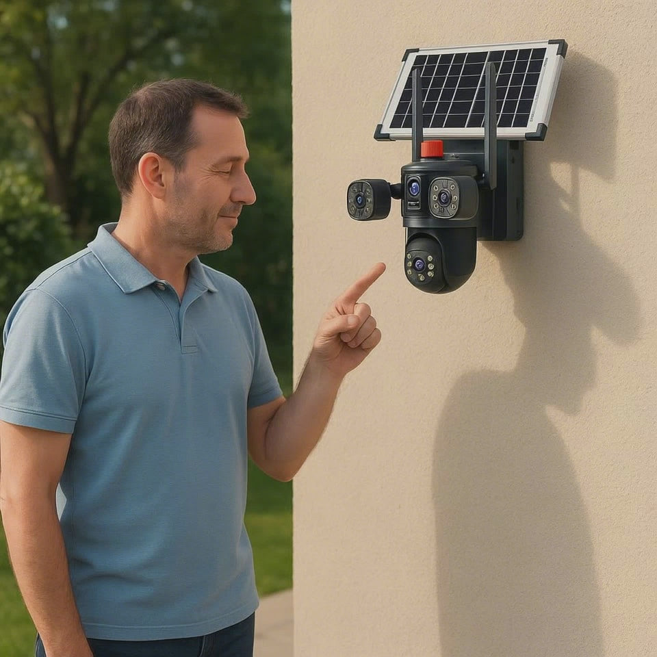 Revolutionäre Solar-Überwachungskamera mit drei Objektiven: 360°-KI-Schutz mit 15 Tagen ununterbrochener Stromversorgung