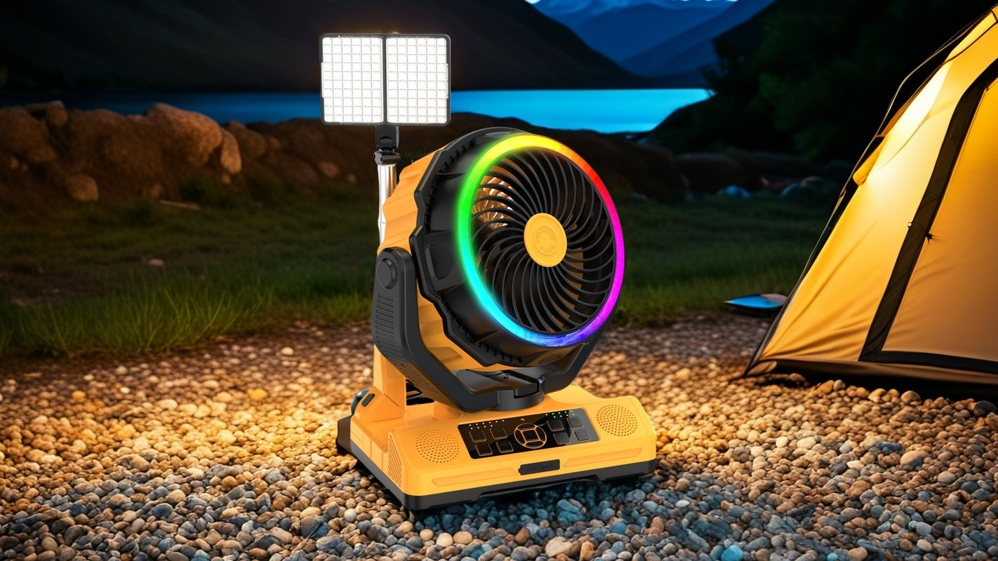 Charge Devices, Cool Any Space & Set Ambiance: 36H Runtime Fan | 3-Light Modes | 20W Fast Charging | Bluetooth 5.3 Speaker